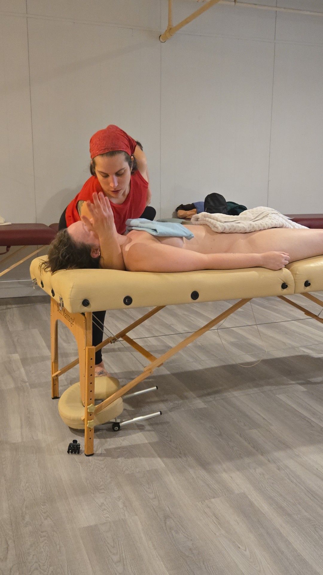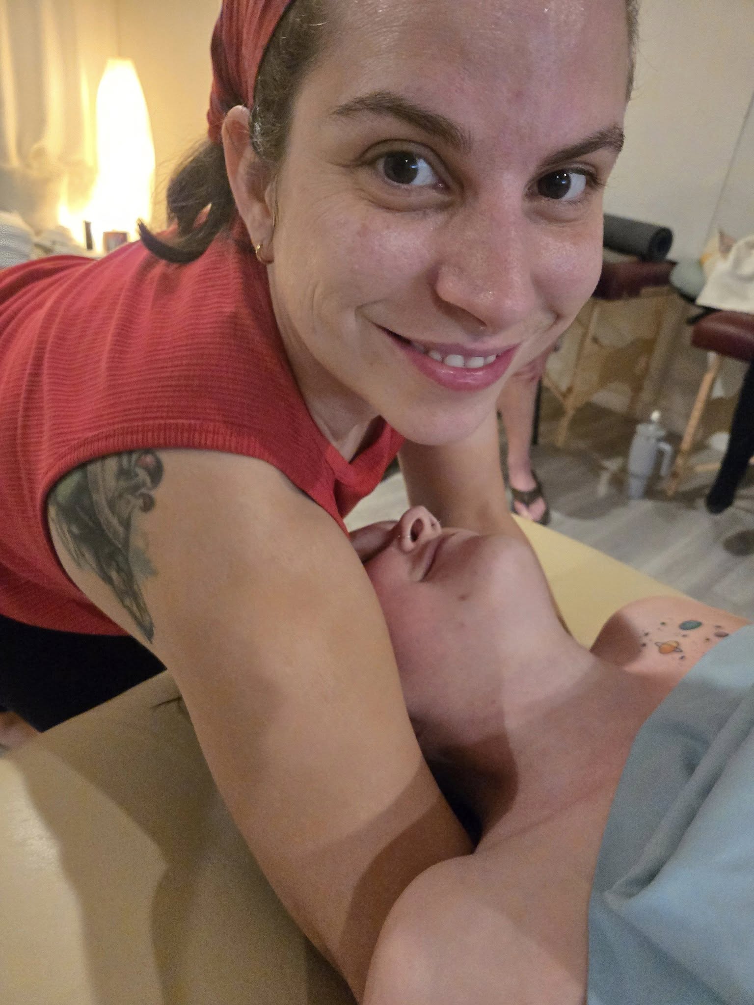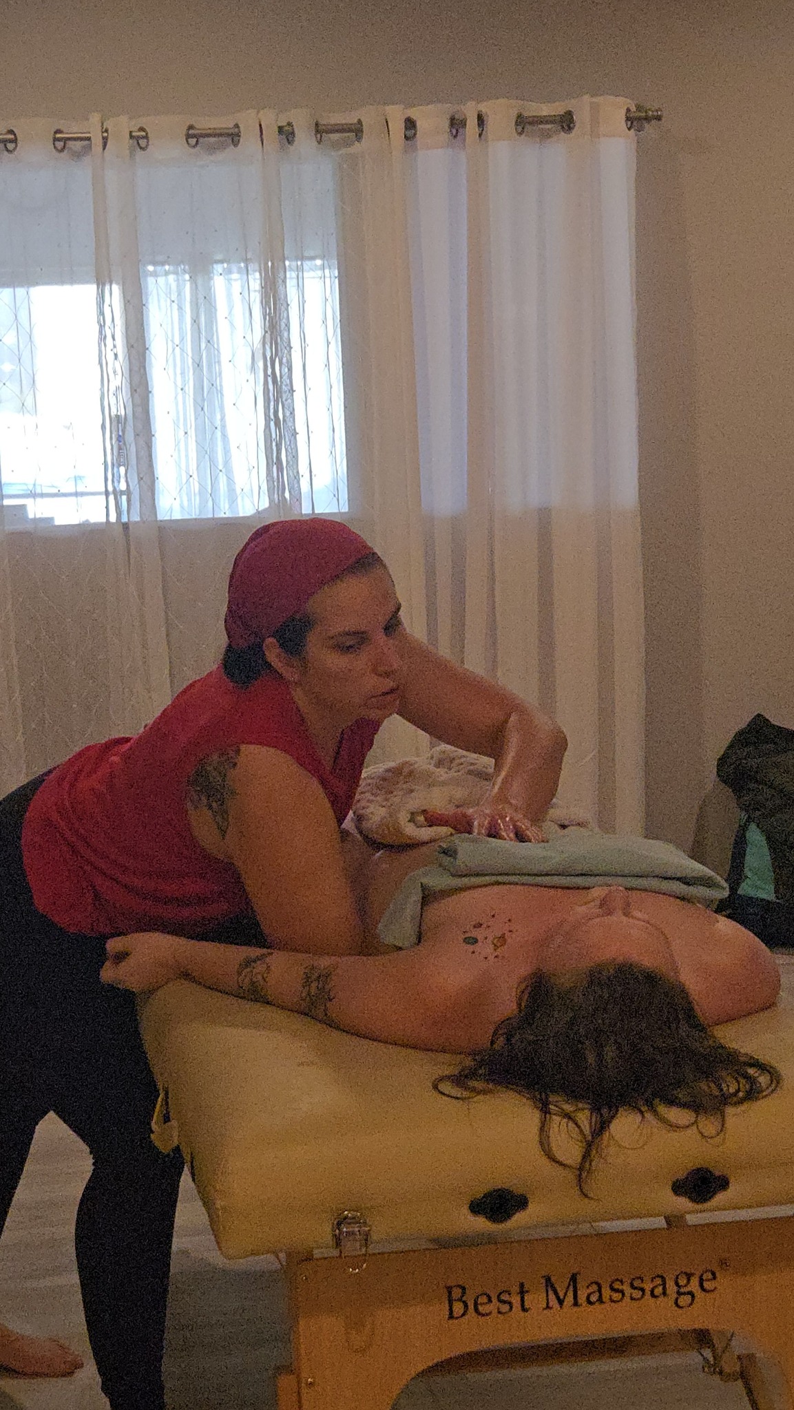 Instructor, Evelyn Anne Barnette LMT, showcasing unique Lomi Lomi strokes